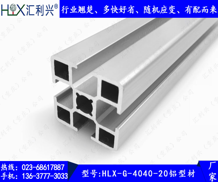 流水線鋁型材:40*40*t2.0鋁型材的介紹: 流水線鋁型材:40*40*t2.0鋁型材(編號:HLX-23),此款型材米重1.35公斤、槽寬8.3mm、長度6.02米、常使用在載重量更高的工作臺、電子產(chǎn)品裝配線、重型通機裝配線等設(shè)備行業(yè)、表面分陽極氧化銀白與電泳兩種處理方式,該鋁材連接件配備有專用連接件(40*40)、M12調(diào)節(jié)腳杯、萬向腳蹄、金屬(塑膠)合頁、封邊條(軟質(zhì)、硬質(zhì))、內(nèi)置拉套組件、長條對接件等