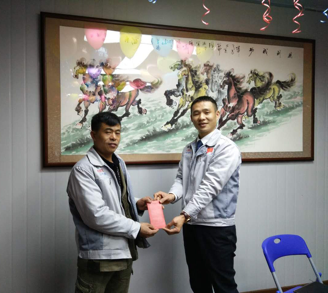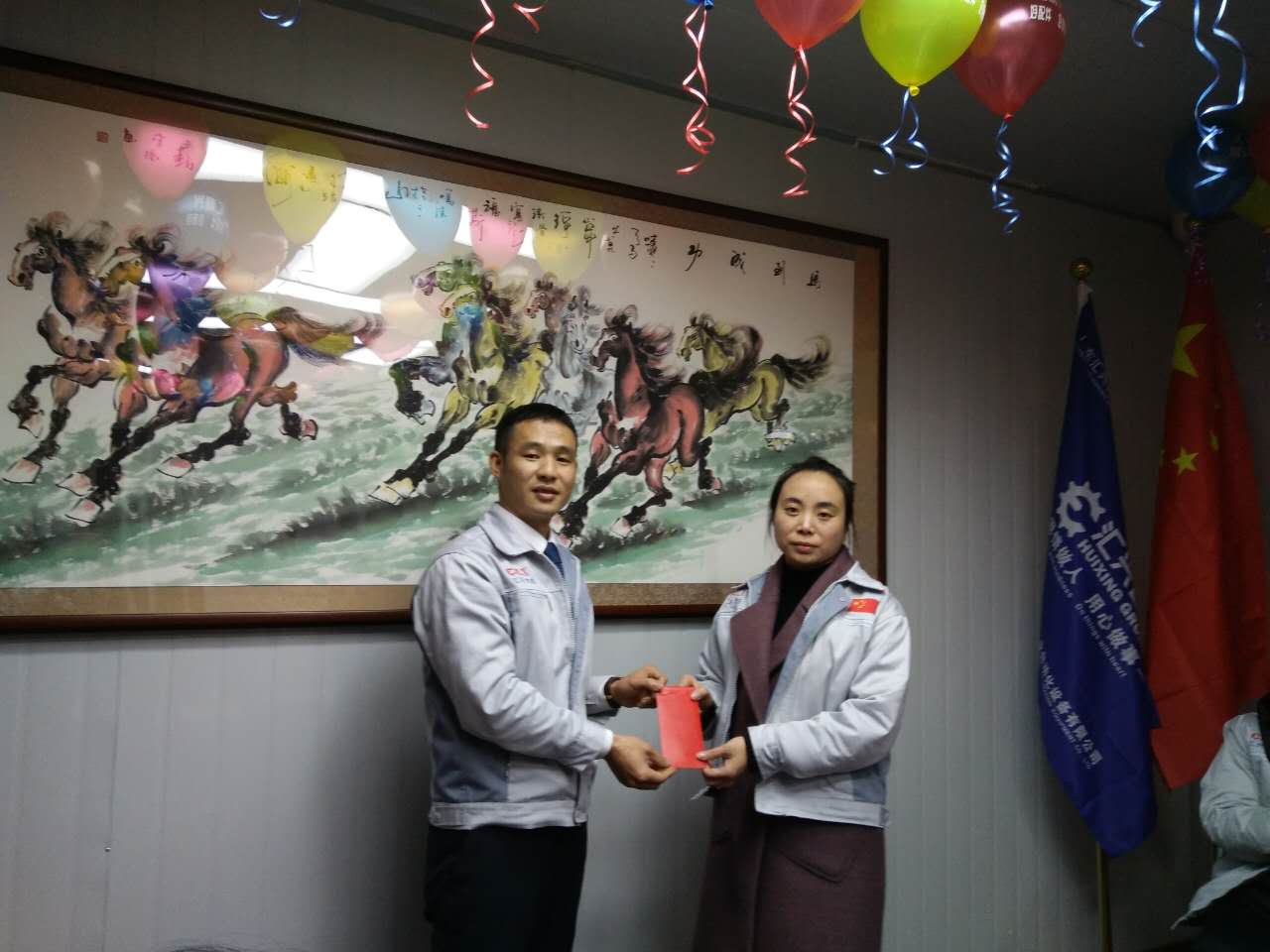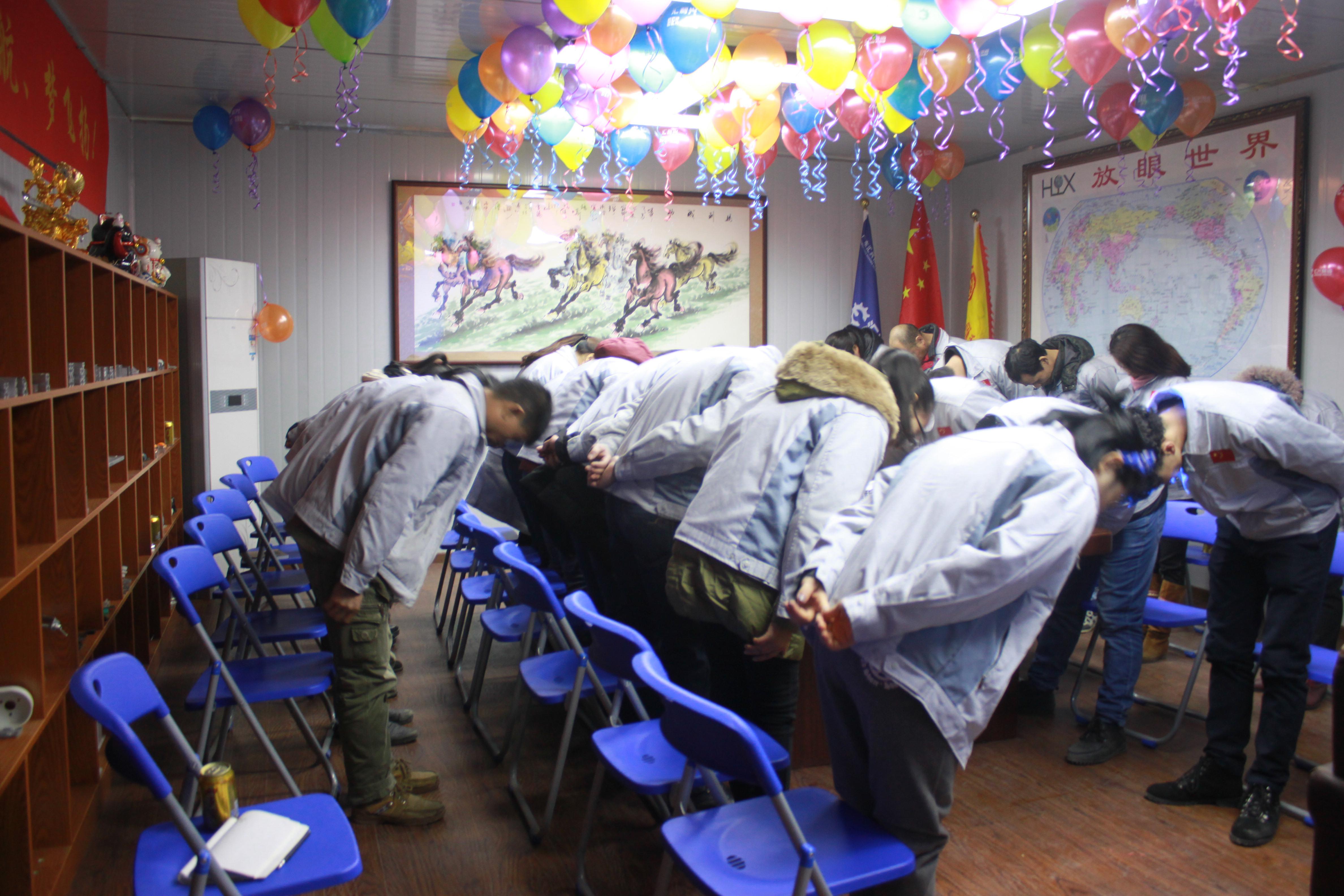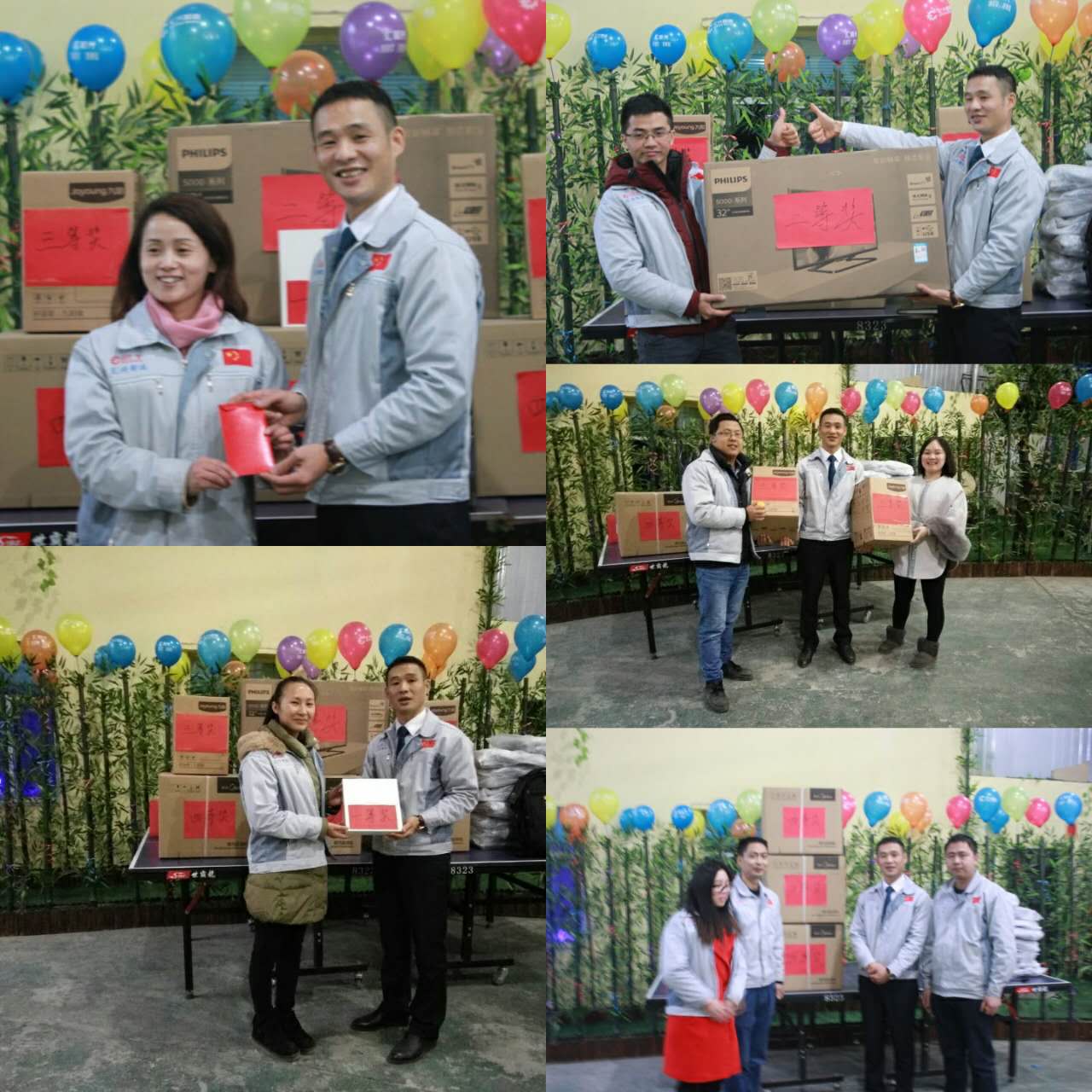 (眾人一條心)游戲準備中,裁判們?yōu)檫x手們系上同心交織的紐帶 匯利興女戰(zhàn)士敲擊士鼓,士氣比武器更重要 會議召開前對企業(yè)三道(人道、孝道、商道)行三鞠躬 年度盛會由主持人劉園園上臺正式拉開序幕,會議前我們一起回眸2016年工作縮影,回眸了與匯利興大家庭的交集。 會議上,胡總經(jīng)理表示:2017年新起點的一系列規(guī)章制度、員工薪酬福利制度、員工職位考核制度,回首了2016年匯利興的成長與發(fā)展,3月14日公司搬址、傳祺戰(zhàn)車加入、倉儲及系統(tǒng)完善,2017年展望與目標。同時表示感謝大家在2016年中的包容與支持同時也相信大家在2017年能一起攜手完成我們的目標及挑戰(zhàn)。此后各部門代表發(fā)言總結(jié)2016年展望及2017年每月業(yè)績目標。 匯利興全體戰(zhàn)士一起回眸2016年與匯利興大家庭的交集 隨著年會的氣氛越來越濃厚,接下來由胡總經(jīng)理一一頒發(fā)獎金及揭曉年會大獎獲者。獎金頒發(fā):最佳付出獎、最佳責任獎分別是劉元平與石樂歡戰(zhàn)士,在此感謝兩位家人的奉獻與付出。 在你們愛家的同時匯利興這個家會更加愛你們。 胡偉路總經(jīng)理與“最佳責任獎”榮獲者石樂歡同框合影 胡偉路總經(jīng)理與“最佳付出獎”榮獲者劉元平同框合影 年會大獎揭曉,胡總經(jīng)理一一揭曉大獎獲者,此次大獎由26個英文字母之一相繼而出,獲獎組圖以下: 胡偉路總經(jīng)理與年度盛會大獎獲得者合影圖(特等獎、一等獎、二等獎、三等獎、四等獎) 年度盛典活動逐漸接近尾聲,活動以“畫鼻子”游戲拉開帷幕。即使看不見光明,只要心中有信仰、信念那也將是一個通往前方的航燈。 匯利興大家庭年會團圓飯圖貌 隨著年飯的結(jié)束,2016年盛會圓滿結(jié)束?;厥走^去,放眼未來,2016年已逝去的,我們不再留戀,2017年的到來我們?nèi)ビ?;因為在新的一年有我們的目標及夢想我們要一同去?chuàng)造去實現(xiàn)它,實現(xiàn)中國智能裝備全產(chǎn)業(yè)鏈集成智造標桿,繼續(xù)引領(lǐng)行業(yè)的發(fā)展。同時在此感恩所有對匯利興關(guān)懷及支持過的您們,正是因為有了您們的支持才得以讓匯利興茁壯成長,才能讓匯利興在行業(yè)道路上越走越穩(wěn)。感恩您們......