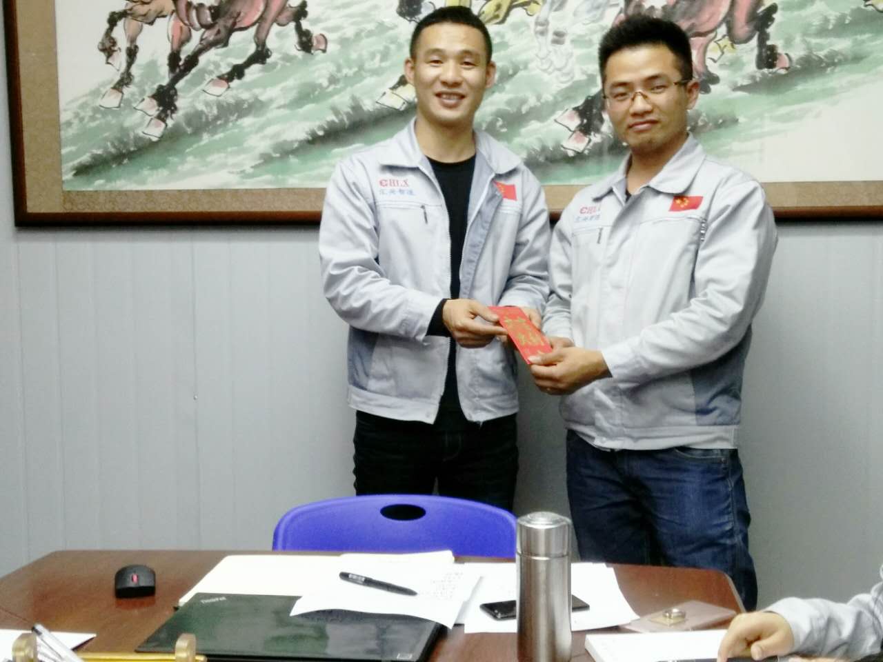 會議召開時圖貌 會上,胡總主要以內(nèi)外結(jié)合的方式對公司發(fā)展進行了相應(yīng)的分析及解讀,并提到公司發(fā)展之路----IPO主板之路,我司平臺、品牌、軟實力的雄厚;進而著重說到公司的“倍增計劃”及內(nèi)部員工KPI考核、6S管理等制度,并表示一個企業(yè)的發(fā)展是贏在轉(zhuǎn)折點而不是起點同時期望每個人用心去做好每件事情,多細心、多仔細,進而提到公司一系列相關(guān)福利及部門獎。 胡偉路總經(jīng)理(圖左)與月度之星張國桃戰(zhàn)士(圖右)同框合影 月度之星進行的也有一個季度的年輪了,隨著時間的洗禮也徜徉著一份責任也彰顯了一份愛,對家及家人的一份愛,但就是由于這份責任與愛讓大家緊連著心、團結(jié)一致去努力。對于“張國桃”戰(zhàn)士的奉獻與努力,對于他的默默奉獻及關(guān)懷,大家早已銘記于心并十分感激,同時在此也感謝他對于公司及同事的無私奉獻及默默關(guān)懷。
