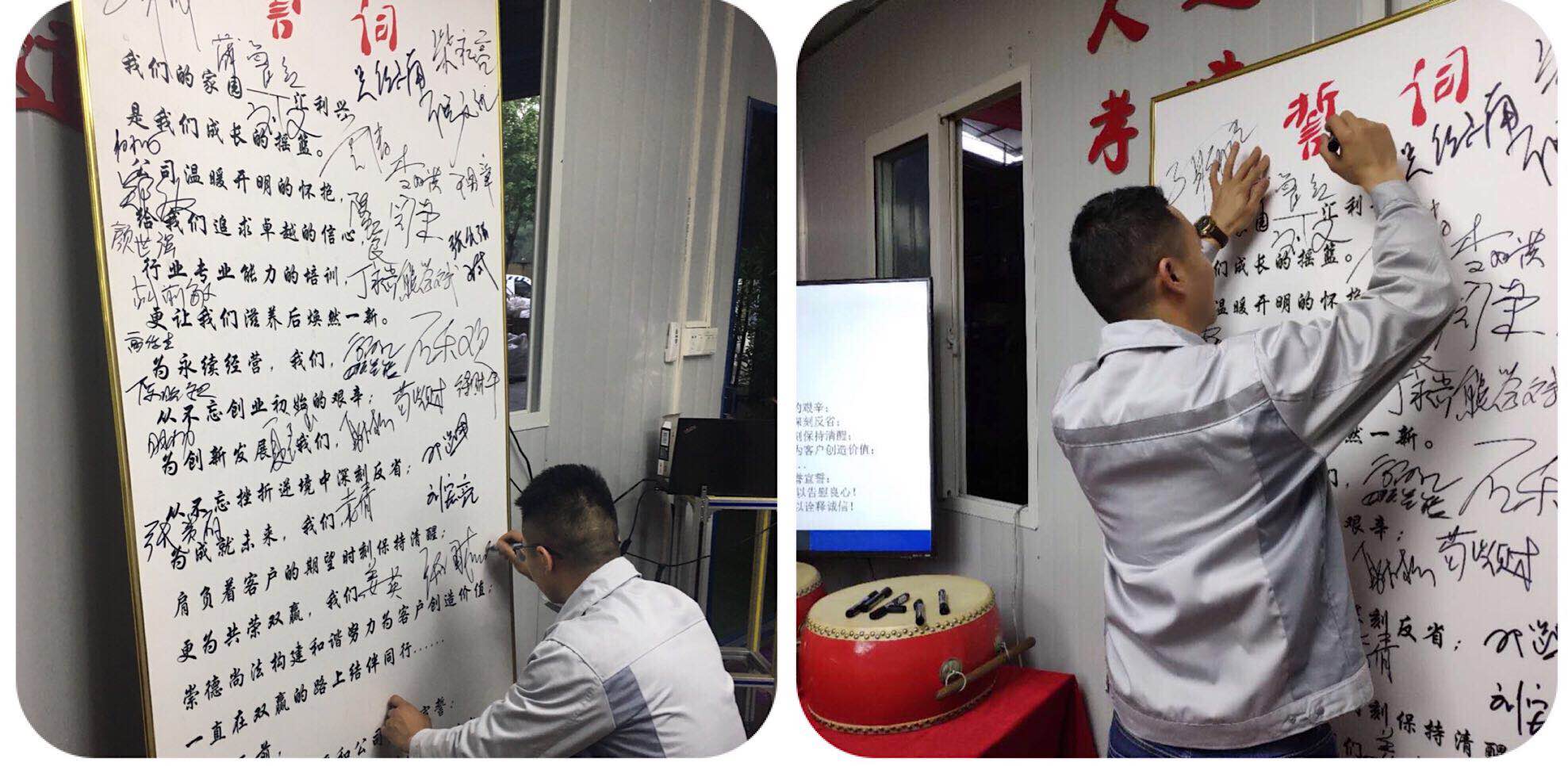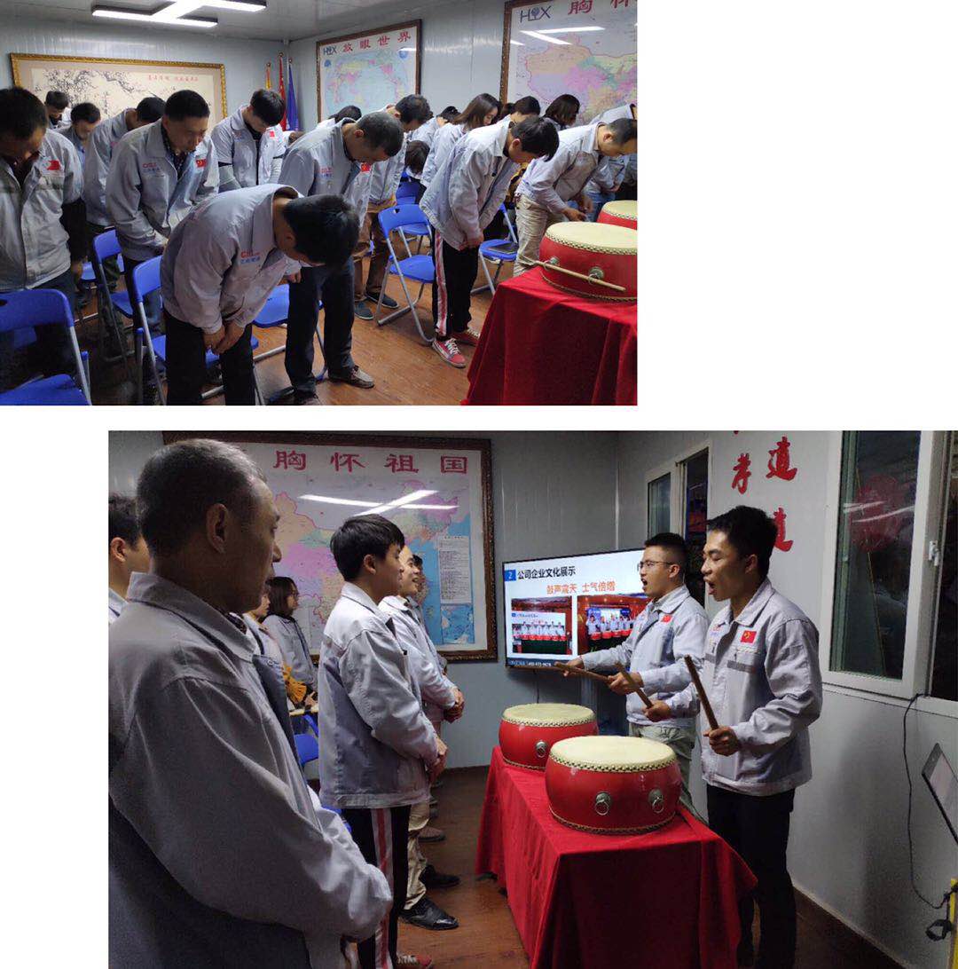 會議第二項議程,企業(yè)文化的展示。全體匯興人整肅衣冠對匯興人倍加推崇的“三道文化”(孝道、商道、人道)鄭重地鞠躬,莊嚴宣誓企業(yè)愿景:“成為全球領先的智能自動化產業(yè)鏈集成服務商”,企業(yè)使命:做受尊敬的好人,造受尊敬的產品,辦受尊敬的企業(yè),建受尊敬的平臺,企業(yè)精神“用情做人、用心做事”,團隊精神“忠誠團結、勤奮進取”,工匠精神:創(chuàng)于手、精于工、智于器、匠于心、品于行,行為準則:口中有德、目中有人、手中有技、心中有愛、行中有善,職業(yè)準則:對工作熱臉、對同事笑臉、對錯誤紅臉、對浪費黑臉、對榮譽爭臉。隨后二位核心精英擊士氣鼓,士氣比武器更重要,現場氣氛熱烈、振奮人心。