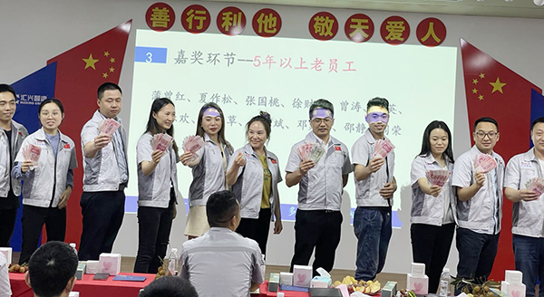 老員工代表夏佐松發(fā)表感言。夏經(jīng)理表示對于我而言,公司就是我的家,五年、十年這不是簡單的數(shù)字,是我對家的愛,是我藏于心中的一份情,同時(shí)十年也是匯利興一段光輝的歷程?;叵雱傔M(jìn)匯利興的面貌再到今天,公司發(fā)生了質(zhì)的飛躍,十年匯利興人共同的奮斗,十年不懈的探索與實(shí)踐,十年的積累與沉淀,更是離不開領(lǐng)導(dǎo)的決策和大家的努力,也正是因?yàn)橛羞@樣一群人在公司領(lǐng)導(dǎo)的帶領(lǐng)下,不斷助推著公司前行,突破!咱們的家才會越來越優(yōu)秀!在此,再次祝賀公司十周年生日快樂! 總部及各分子公司送祝福及慶祝十周年生日。隨著一曲歡快的生日音樂正式拉開十周年慶典儀式,董事長及各分子公司對重慶工廠的聲聲祝福,讓在場的每一個(gè)人都激動萬分,處處洋溢著滿滿的熱情,處處見證了重慶十年的奮斗歷程!中層管理人員共同點(diǎn)燃十根蠟燭,象征著匯利興重慶工廠業(yè)績蒸蒸日上、鴻運(yùn)相伴永久,隨后全體匯利興人一起唱響生日歌,一起慶祝重慶十周年生日快樂!
