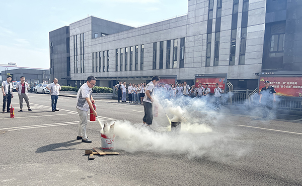 消防演練中,公司特地邀請西彭園區(qū)消防安全員向員工介紹消防安全相關(guān)知識,火災(zāi)逃生注意事項、消防器材使用方法等消防安全知識,隨著安全員點燃火源后,滅火器和消防樁的使用實戰(zhàn)演練正式開始。
