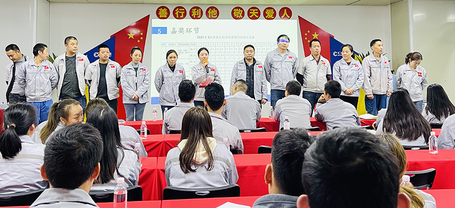 10月20日18點45分,匯利興西南工廠全體員工在匯利興學校召開9月月度會議,會議總結(jié)上月項目發(fā)展情況,規(guī)劃部署下月生產(chǎn)計劃,進一步推進公司戰(zhàn)略實施,由行政部主持。 會議前,由二位核心高管擊響士氣鼓,鼓舞士氣,凝心聚力,鼓舞著戰(zhàn)友們奮勇前進和堅決打勝仗的決心,并以這種以評促進、你追我趕的“激勵文化”,潛移默化融于員工的日常工作中。 宣讀企業(yè)文化,向文化三道孝道、商道、人道鄭重鞠躬,并對本月新入員工進行歡迎儀式。
