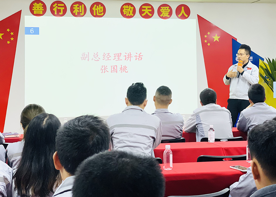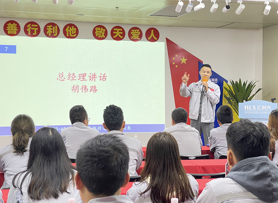 銷售經(jīng)理蒲曾紅發(fā)表工作感言。蒲經(jīng)理表示回首過去,匯利興更像是一個載著夢想和技能的學校,在這里品嘗奮斗后的甘甜,實現(xiàn)人生的目標,享受企業(yè)帶來的自豪。她表示在這八年的匯興生涯中,見證了公司的突飛猛進,見證了公司質(zhì)的飛躍,讓我深知“唯奮斗者幸?!保徊揭粋€腳印蓄勢向前、精進不息。 客服部經(jīng)理石樂歡發(fā)表工作感言。首先石經(jīng)理通過6個方向闡述部門上月進步情況,同時也進一步指出上月部門待加強要點,石經(jīng)理表示我們要在現(xiàn)有基礎(chǔ)上發(fā)揚自身部門優(yōu)點,提高客戶幸福指數(shù),優(yōu)化工作流程、強化工作細節(jié),嚴于利己做好表率,創(chuàng)造高效率,使公司的服務再邁新臺階。 常務副總經(jīng)理張國桃發(fā)表工作感言。張副總對2021年三季度工作進行回顧,對公司業(yè)績的增長表示肯定,分析了部分工作未完成的主要原因和關(guān)鍵要素,進一步對后期工作作了如下要求:一、銷售致勝,業(yè)績?yōu)橥酰珕T營銷,加大績效產(chǎn)出;二、強化客戶幸福指數(shù),為客戶創(chuàng)造效益;三、幫助新生力量,快速融入團隊;四、增強危機意識,確保安全生產(chǎn);五、注重細節(jié)把控,強化責任意識,并進一步勉勵全體員工要做一個積極、有正能量的人,像太陽一樣溫暖有光、有力量。 總經(jīng)理胡偉路發(fā)表工作感言。胡總經(jīng)理用四個成語,“政從正來、智從知來、位從為來、財從才來”,詳細闡述了公司團隊和發(fā)展,并從組織與管理、人才與干部、創(chuàng)新與效率、安全與風險作了深度剖析,進一步勉勵全體員工要擰成一股繩,齊心協(xié)力向前走,堅持做一個自燃人,去點燃我們的夢想。為了我們更好的明天,一起去拼搏奮斗! 任重道遠,更需策馬揚鞭。一路走來,我們戰(zhàn)勝了一個又一個困難,沿著既定的目標健康而快速的發(fā)展,用我們的實際行動將我們的塔越搭越高!因為對匯利興人而言,只有不斷的朝前奮進,公司才能蓬勃發(fā)展,我們才能進步;只有不斷的創(chuàng)新,我們才能在激烈的競爭中脫穎而出,哪怕前方荊棘遍地,也絕不回頭!因為讓家變的強大是我們每個人義不容辭的責任!