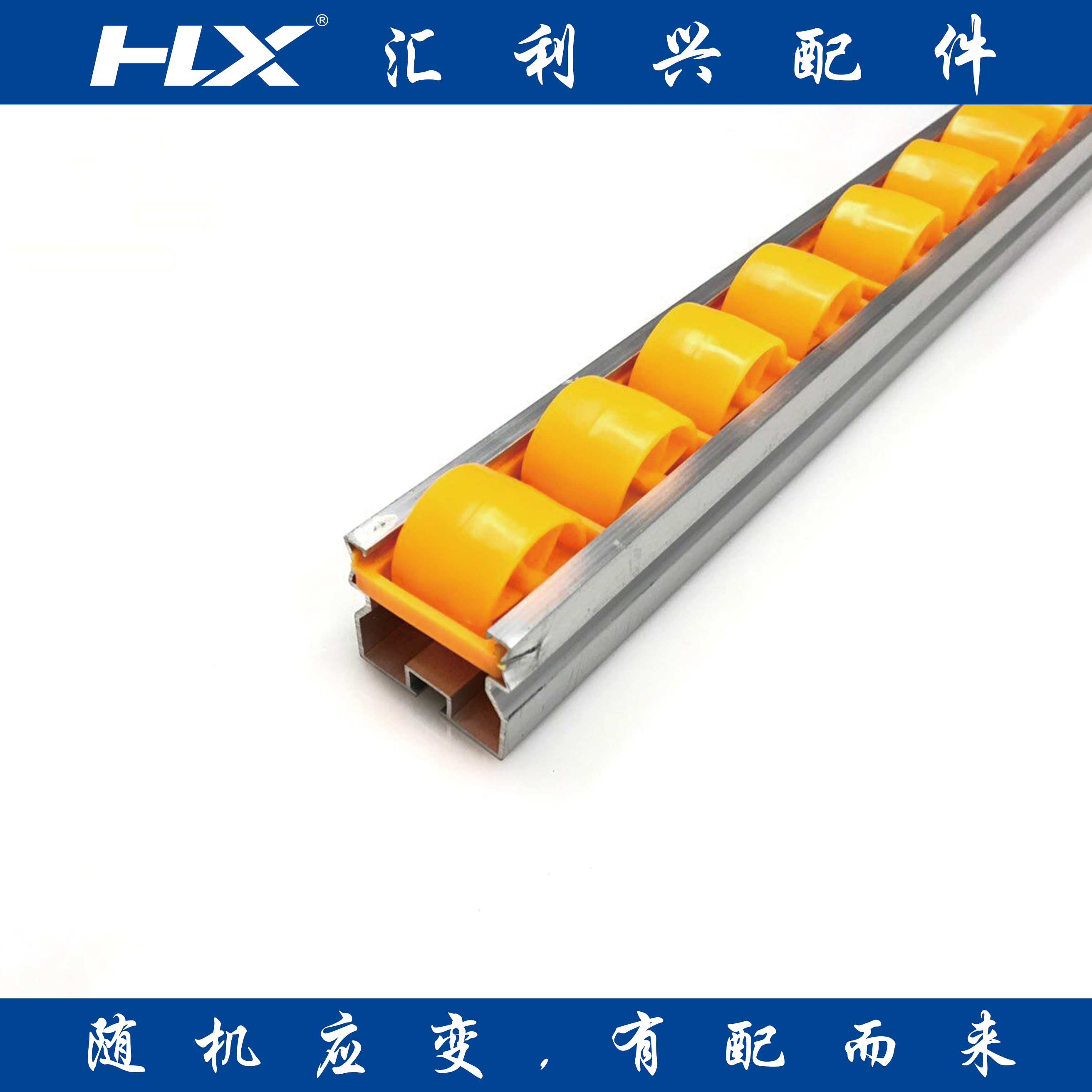 流利條系列:HLX-4A-2鋁合金流利條匯利興產(chǎn)品這流水線配件流利條系列,流利條主要用于輸送、倉儲系統(tǒng)配套產(chǎn)品,可用作滑軌、護欄、導(dǎo)向裝置、滾動性能好、成本低。滾輪采用高品質(zhì)的熱塑性塑料制成,具有摩擦系數(shù)小、抗沖擊、壽命長、耐酸堿性、耐潮溫等優(yōu)點。當(dāng)貨物重量超過額定的負荷時,可在一個通道安裝多根流利條。安裝傾斜度取決于重量以及流利架的深度,一般3O~6O(5%~9%)。通常在深度方向上每隔600mm~800mm安裝一根支撐梁以增強流利條的剛度。滾輪顏色可選:黃色,藍色,白色,黑色等其他顏色。輪距常用為:35mm,45mm 并可以根據(jù)實際使用情況定尺生產(chǎn)。我司專業(yè)生產(chǎn)鋁全金流利條,載重流利條,板金流利條,鋁全金流利條接頭,板金流利條接頭等流水線配件。 |